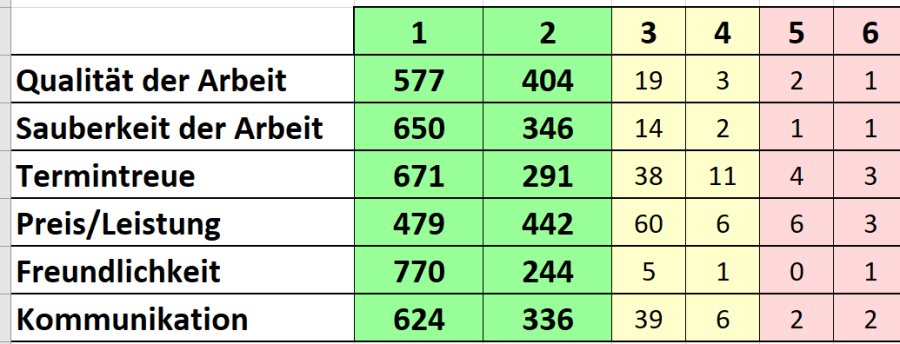 Nach Abschluß unserer Arbeiten bitten wir alle Kunden, uns detailiert zu bewerten.